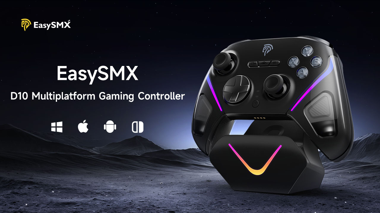Controlador de juegos EasySMX D10 con joysticks TMR, Gamepad multiplataforma con bloqueo de gatillo de 2 vías, base de Carga inteligente